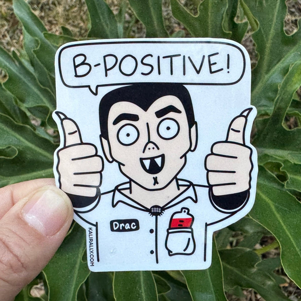 Celebrate Halloween with a dose of blood-themed humor! This playful “B-Positive” sticker features a cute Dracula as a phlebotomist, perfect for nurses, healthcare workers, or anyone who loves funny Halloween stickers.